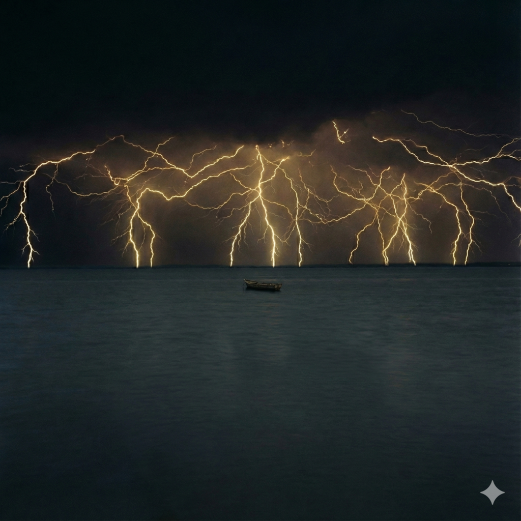 周囲の水面には次々と雷が落ちているのに、なぜかその船の周りだけは見えない結界があるかのように、一本の雷も落ちないというのです。