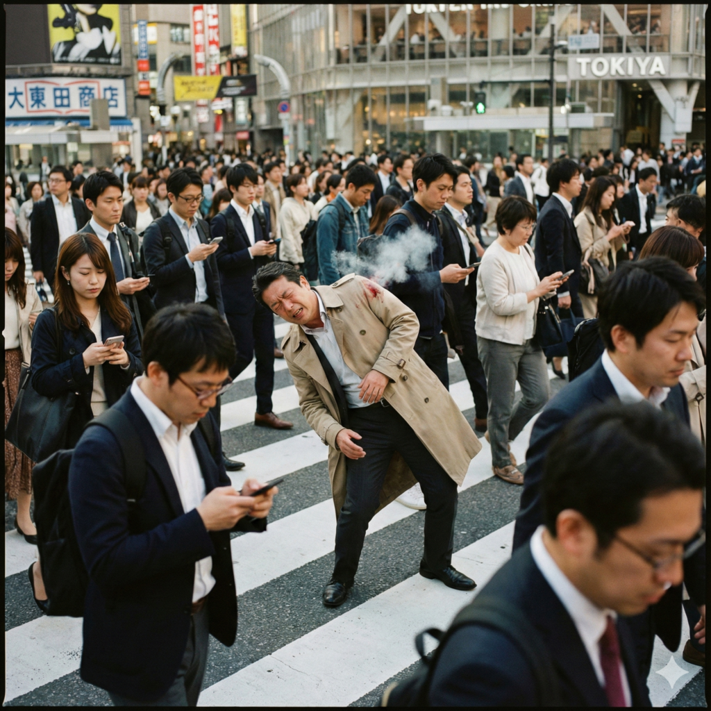 平和な現代の街中で、突然人が倒れ、まるで何かに撃たれたような怪我を負う――。