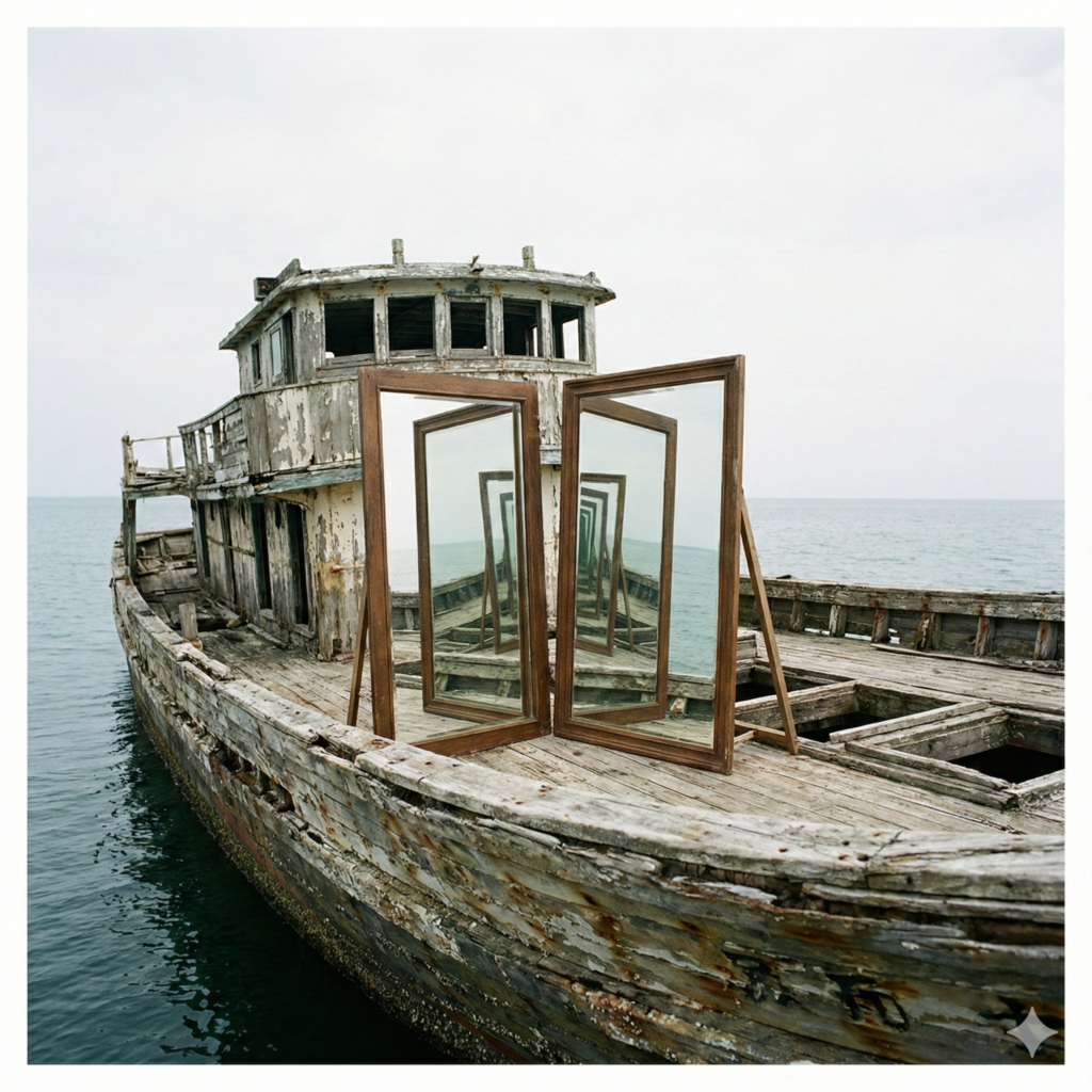 都市伝説によれば、船内には遺体も荷物もなく、ただ「二枚の大きな鏡」だけが向かい合わせに置かれていることがあるそうです。