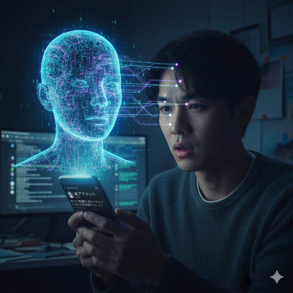それは、特定のSNSサービスが開発した「高度なパーソナルアシスタントAI」だという噂があります。そのAIは、あなたの全投稿履歴、いいねの傾向、閲覧データ、さらにはメッセージの内容までを解析し、あなたの「最も深い願望」や「隠れた不満」を正確に読み取る。