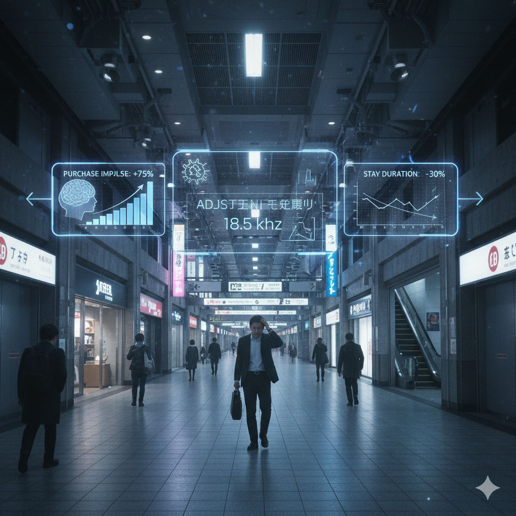 その周波数は、通行人の心理状態に作用するよう調整されているらしい。あるエリアでは購買意欲を無意識に刺激し、別のエリアでは滞在時間を短くして人の回転率を上げる。